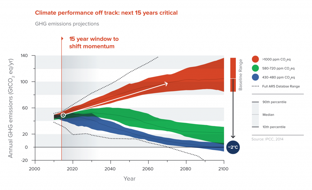 Recent economic research has provided much evidence on the high, economy-wide returns to efficiently allocated and well-managed infrastructure capital. 65 As Chapter 6: Finance indicates, almost US$90 trillion infrastructure spending (in constant 2010 dollars) is projected to be needed in 2015–30 across the cities, land use and energy systems, especially in developing countries. Ensuring that this new infrastructure does not lock countries into a high-carbon path, but rather supports the transition to a low-carbon economy, is expected to have a net additional cost of about US$4 trillion. The latter does not include longer-term operational savings in a low-carbon transition, as a result of burning less fossil fuels.
